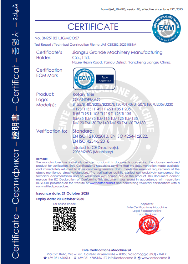 A: Yes, our rotary tillers are CE certified and meet EU machinery directive requirements.
