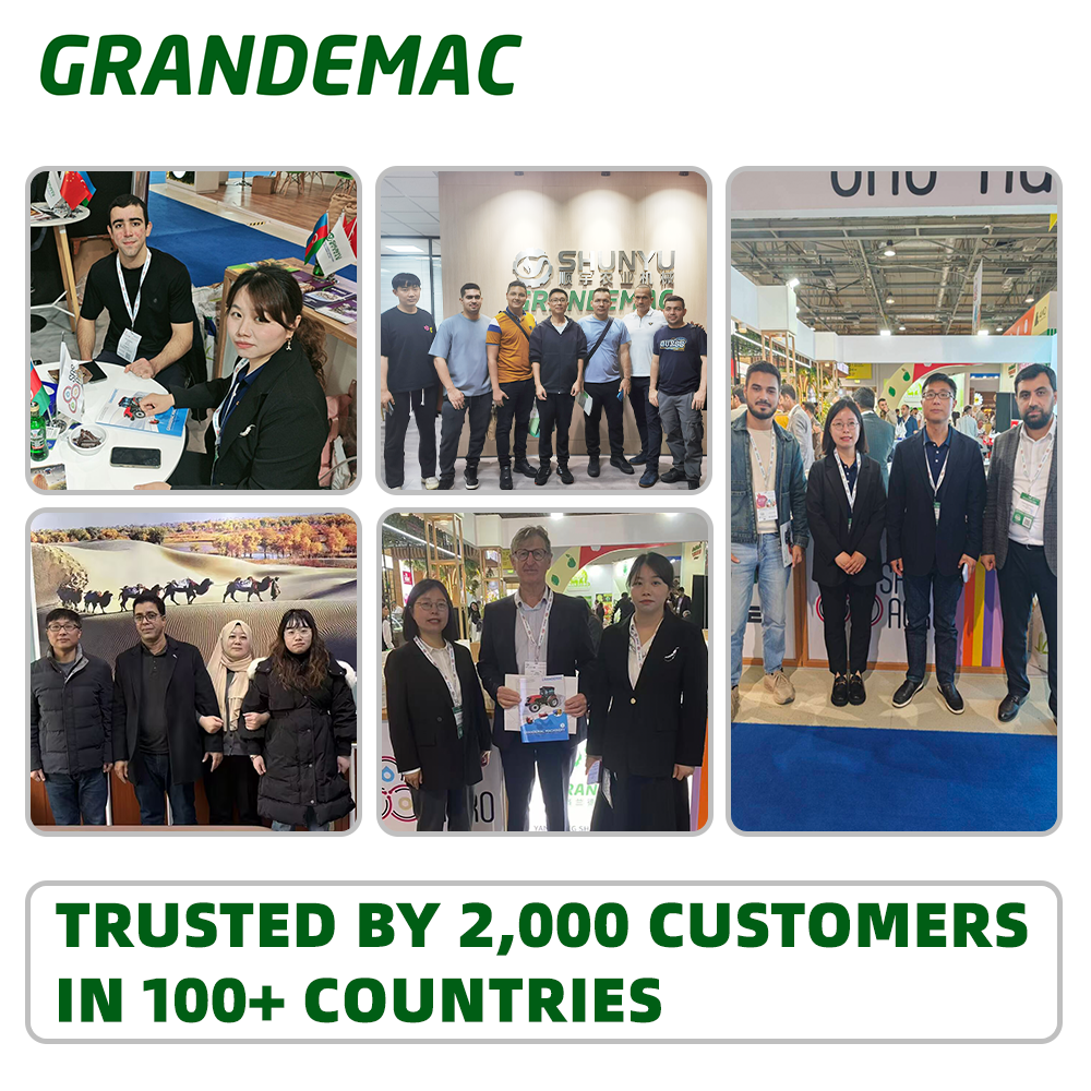 GRANDEMAC is a proprietary brand developed by our company, which includes agricultural planting machinery such as soil tillage, weeding, fertilization, sowing, spraying, rotary tillage, transportation, etc. We provide farmers with technologically advanced and reliable agricultural tool products, helping them achieve comprehensive agricultural mechanization. The company has been committed to the design, research and development, and production of multifunctional tractor accessories. The products are exported to countries such as South America, Latin America, and West Africa, and are highly favored by international customers. We have advanced equipment, rich production experience, years of experience in foreign trade exports, a vibrant young team, timely after-sales service, and excellent product quality. Looking forward to new and old customers visiting, guiding, and conducting business negotiations