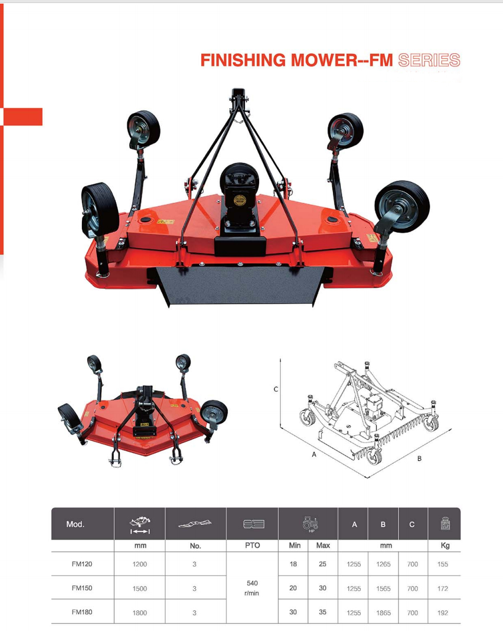 | FM120 | 1200 | 3 | 540r/min | 18 | 25 | 1255 | 1265 | 700 | 155 |