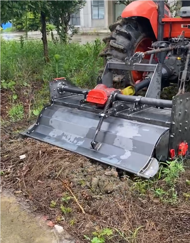 Ein Stück Land vor der Fabrik ist mit Unkraut bedeckt, was die tatsächliche Arbeitswirkung der Bodenfräse widerspiegeln kann.